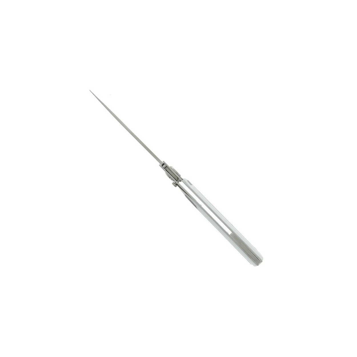 Couteau pliant avec clip ceinture, lame 9cm en Inox trempé 14C28N, manche 11cm en corian blanc / acier