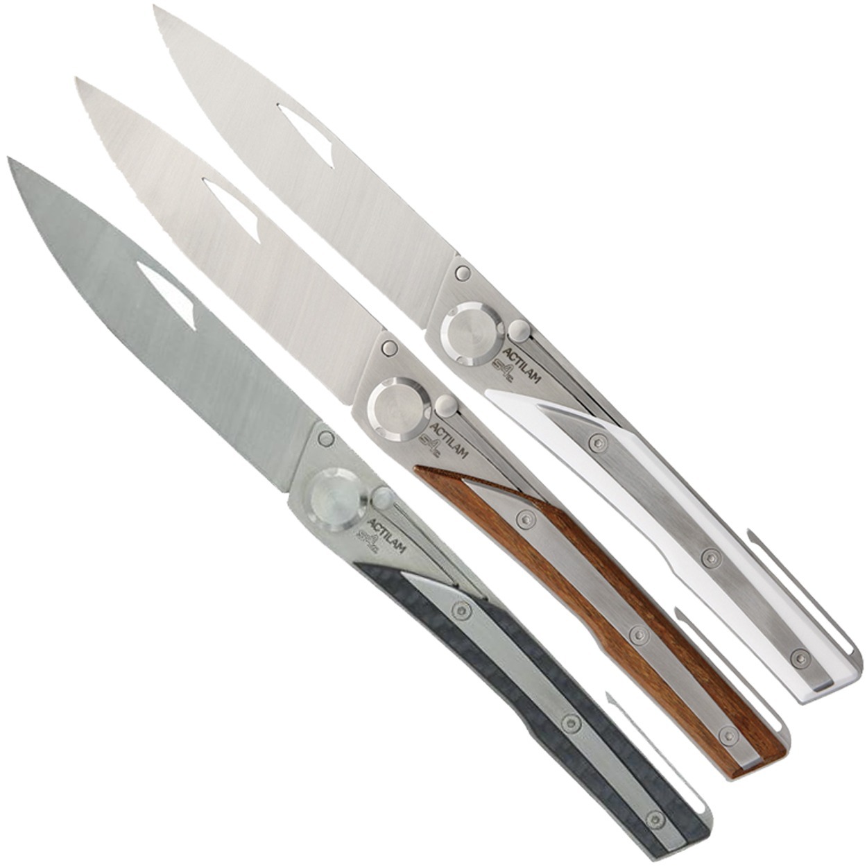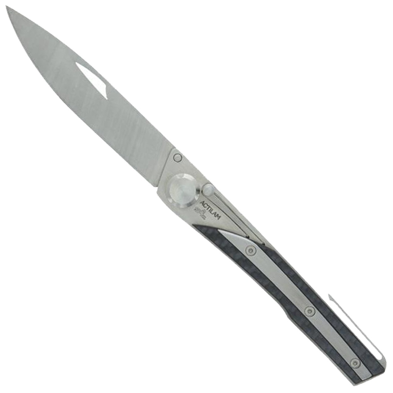 Actilam - Couteau Lame Inox 14C28N Manche 11cm Fibre de Carbone Clip - S4.FC