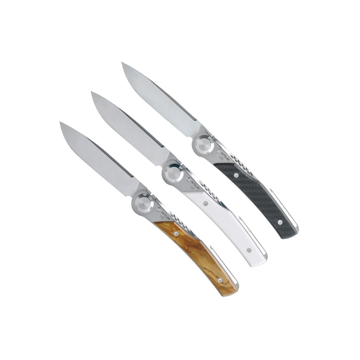 Pascal JODAS créateur d'ACTILAM, et Jean-Pierre SUCHERAS créateur de couteaux d'art, 2 fois Meilleur Ouvrier de France, ont développé ce modèle ensemble.